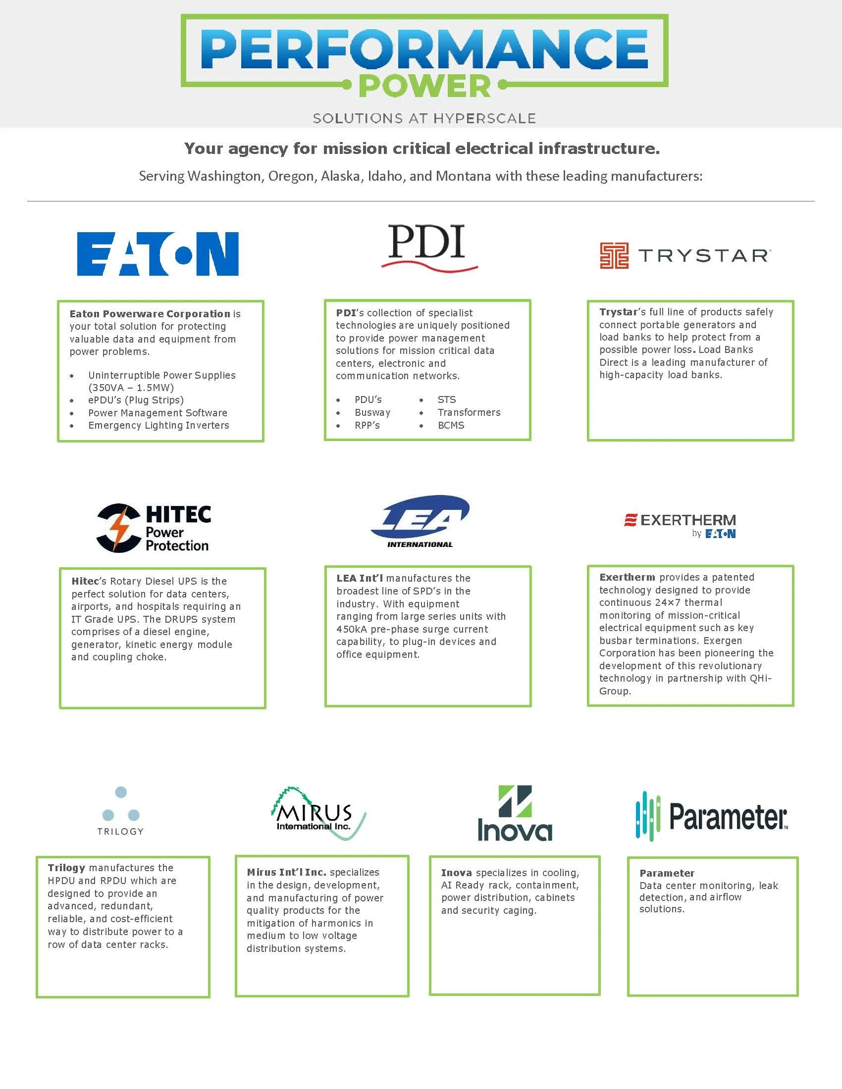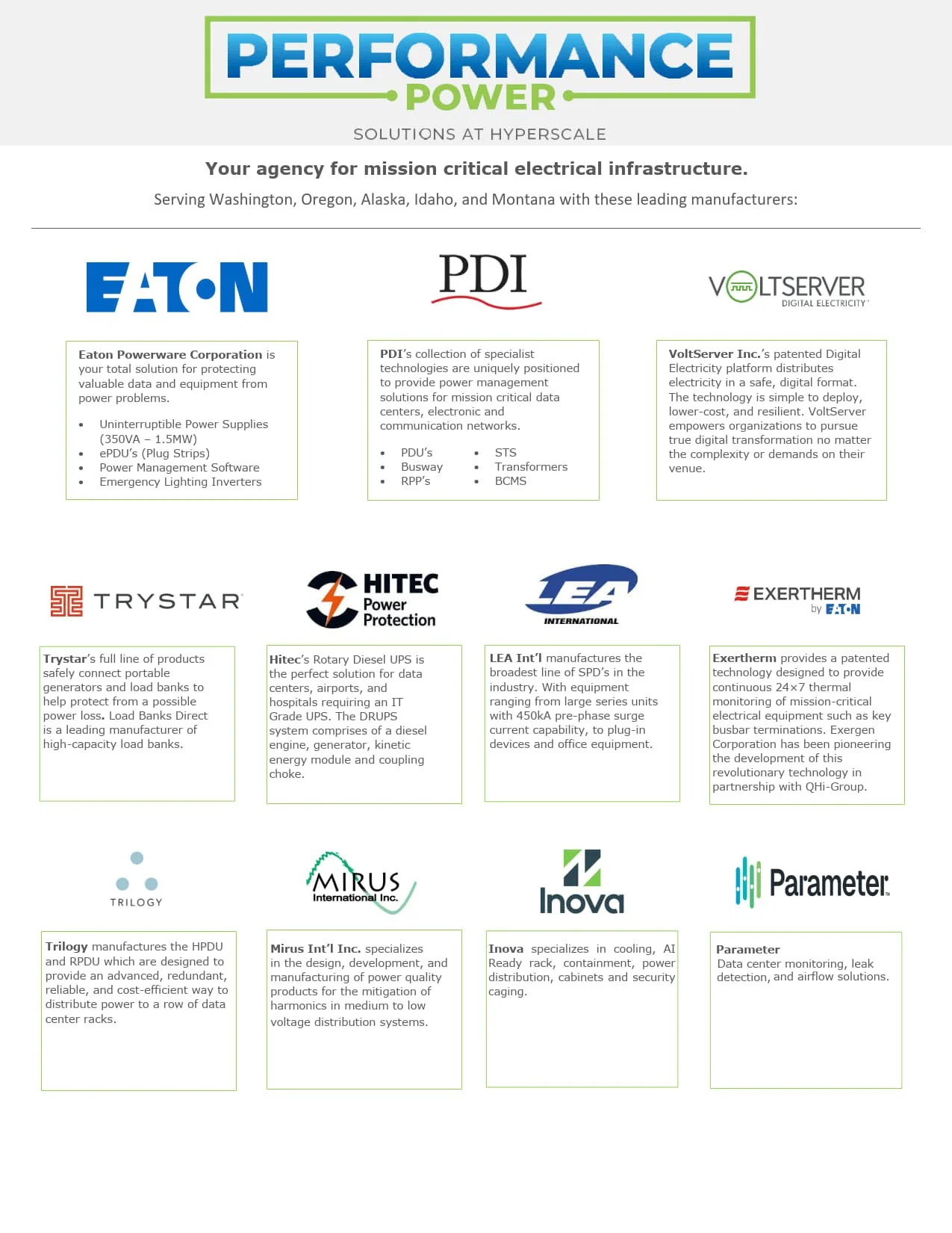 Click to view our Line Card, showing the manufacturers we represent in Washington, Oregon, Alaska, Idaho, and Montana.